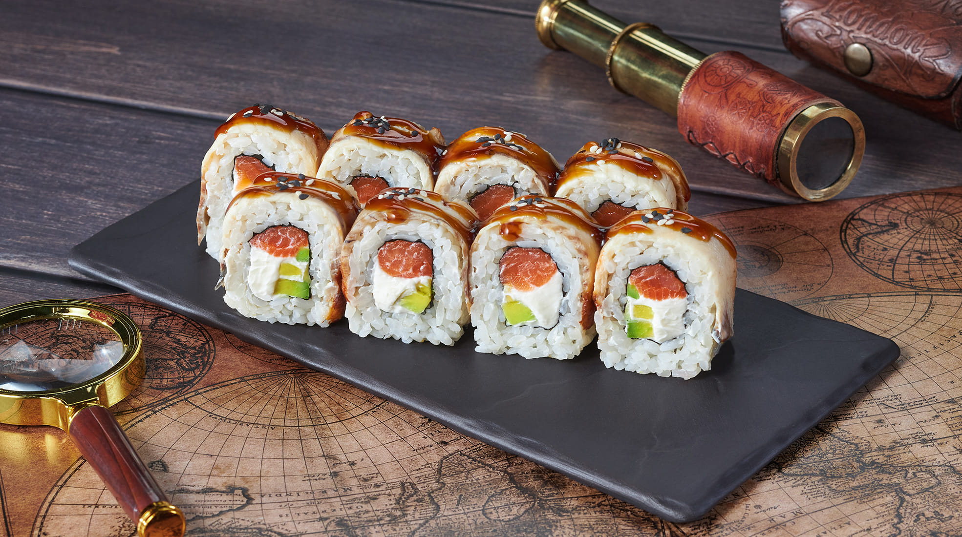 Состав: Лосось, угорь, крем чиз, авокадо, соус унаги, кунжут, рис, нори. Не забудьте заказать имбирь, васаби и соевый соус. Они не входят в стоимость заказа. *Внешний вид блюда может отличаться от фото на сайте.